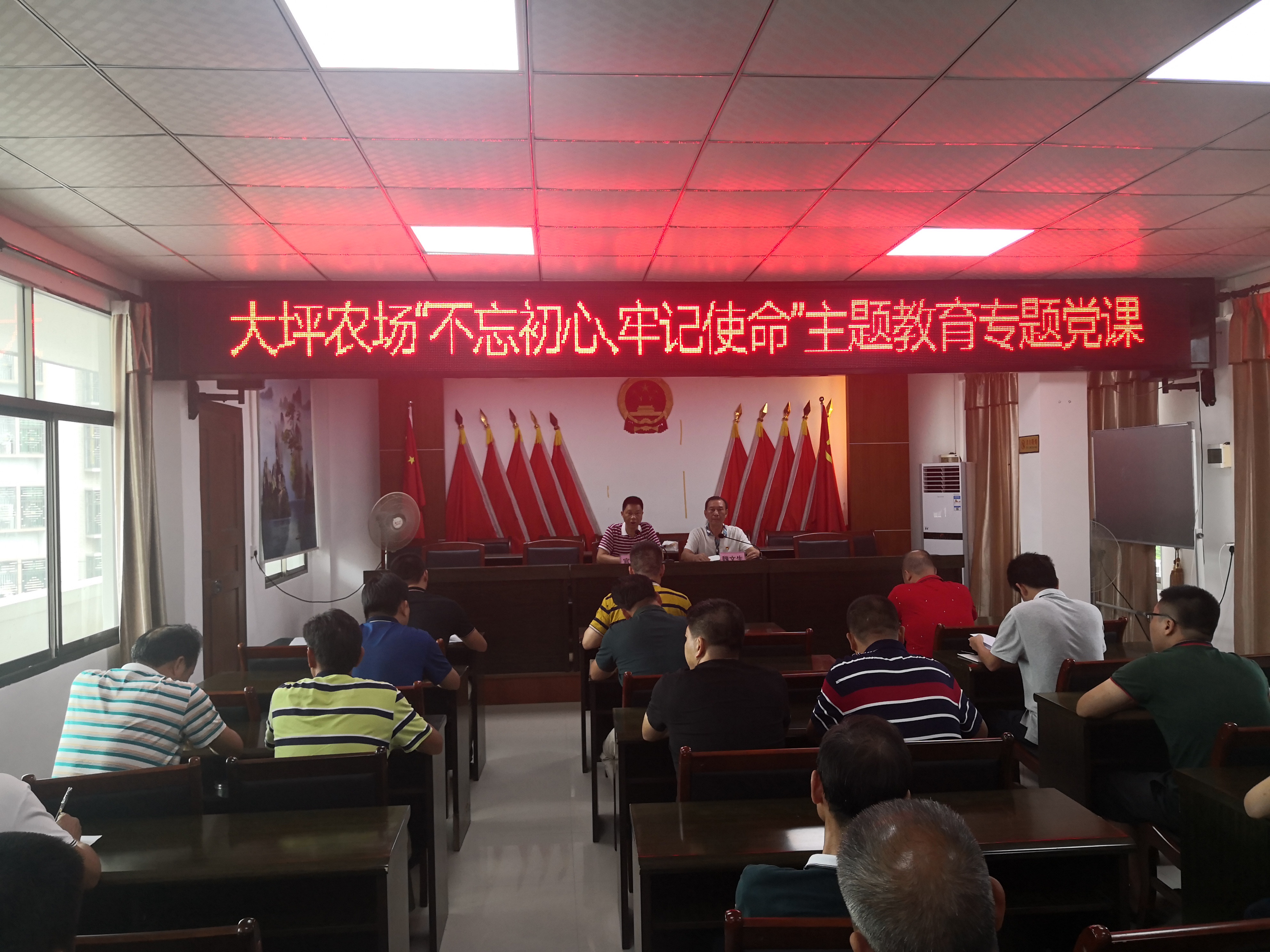 揭陽農(nóng)墾局人事科副科長鐘慶成,場領(lǐng)導(dǎo)班子成員,場全體機(jī)關(guān)干部,場各黨支部書記等40多人參加此次專題黨課,