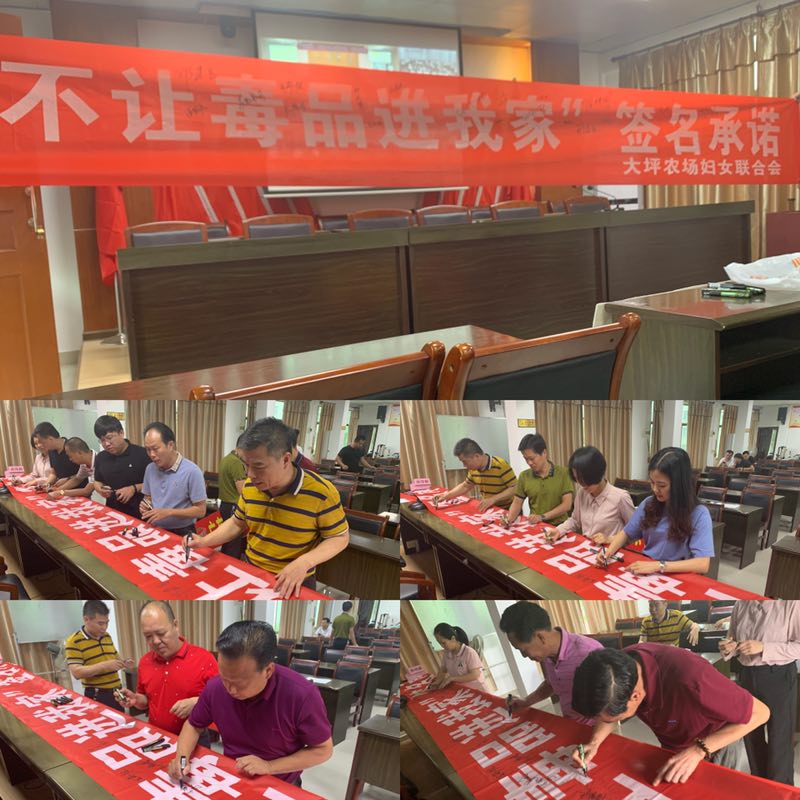 為進一步提高禁毒意識,鞏固禁毒成果。5月29日上午,大坪農(nóng)場開展“不讓毒品進我家”簽名承諾活動,活動由場婦聯(lián)、團委、關(guān)工委等部門牽頭組織,參加簽名承諾的有全場機關(guān)職工干部共35人。