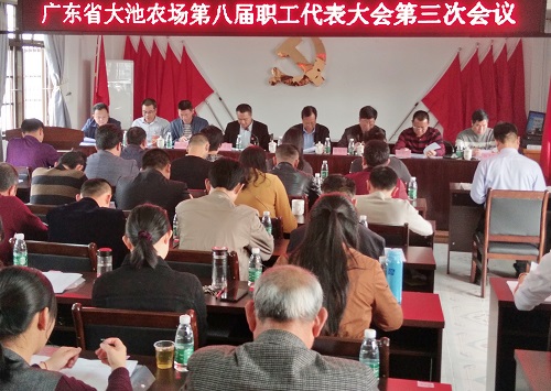3月19日上午,大池農(nóng)場召開第八屆職工代表大會第三次會議。揭陽農(nóng)墾集團(tuán)公司(農(nóng)墾局)黨組成員、副總經(jīng)理(副局長)王錦文,工會副主席蔡旭平等領(lǐng)導(dǎo)應(yīng)邀出席,會議由大池農(nóng)場黨委委員、副場長、工會主席林春云主持。場全體職工代表共39人參加會議。